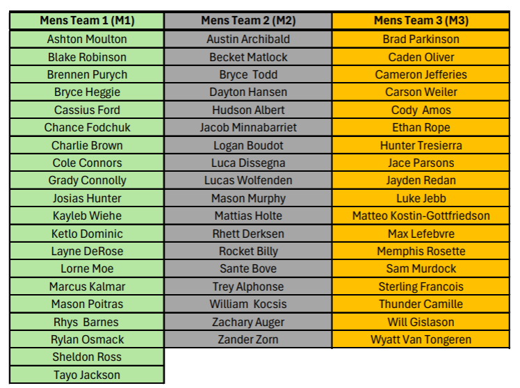 MEN’S ROSTERS