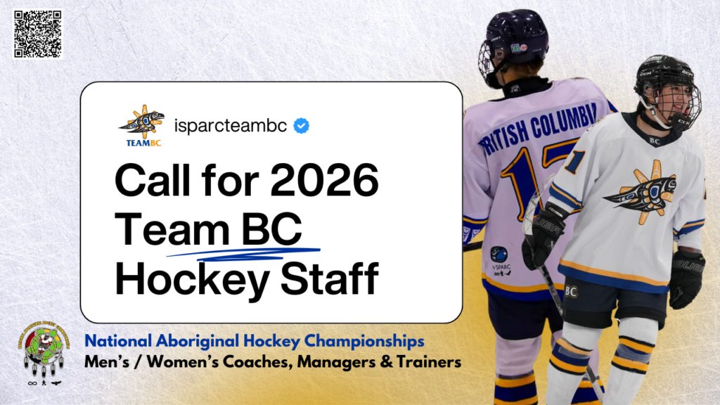 I·SPARC is now accepting applications from qualified Indigenous hockey coaches to join the Team BC volunteer coaching staff for the 2026 National Aboriginal Hockey Championships (NAHC).
