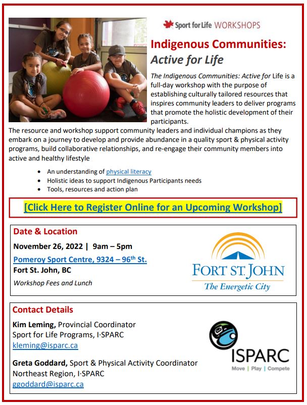 The Indigenous Communities: Active for Life is a full-day workshop with the purpose of establishing culturally tailored resources that inspires community leaders to deliver programs that promote the holistic development of their participants.