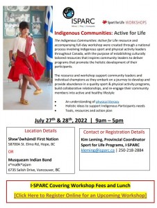 The Indigenous Communities: Active for Life resource and accompanying full-day workshop were created through a national process involving Indigenous sport and physical activity leaders throughout Canada, with the purpose of establishing culturally tailored resources that inspires community leaders to deliver programs that promote the holistic development of their participants.