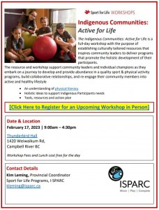 February 17, 2023 | 9:00am – 4:30pm 1420 Weiwaikum Rd, Campbell River BC Workshop Fees and Lunch cost free for the day |