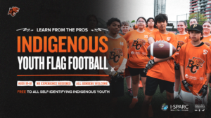 I·SPARC and the BC Lions have partnered to host an Indigenous Youth Program (IYP), for flag football programs across the Lower Mainland. This program will offer opportunities for four (4) youth teams to be formed from the Fraser and Vancouver Coastal regions (Tsawwassen, North Vancouver, Katzie, and Chilliwack).