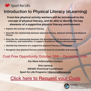 Online request form for a Sport for Life, E-learning Introduction to Physical Literacy. ISPARC will be covering the workshop associated fee during the month of November for participants in BC.